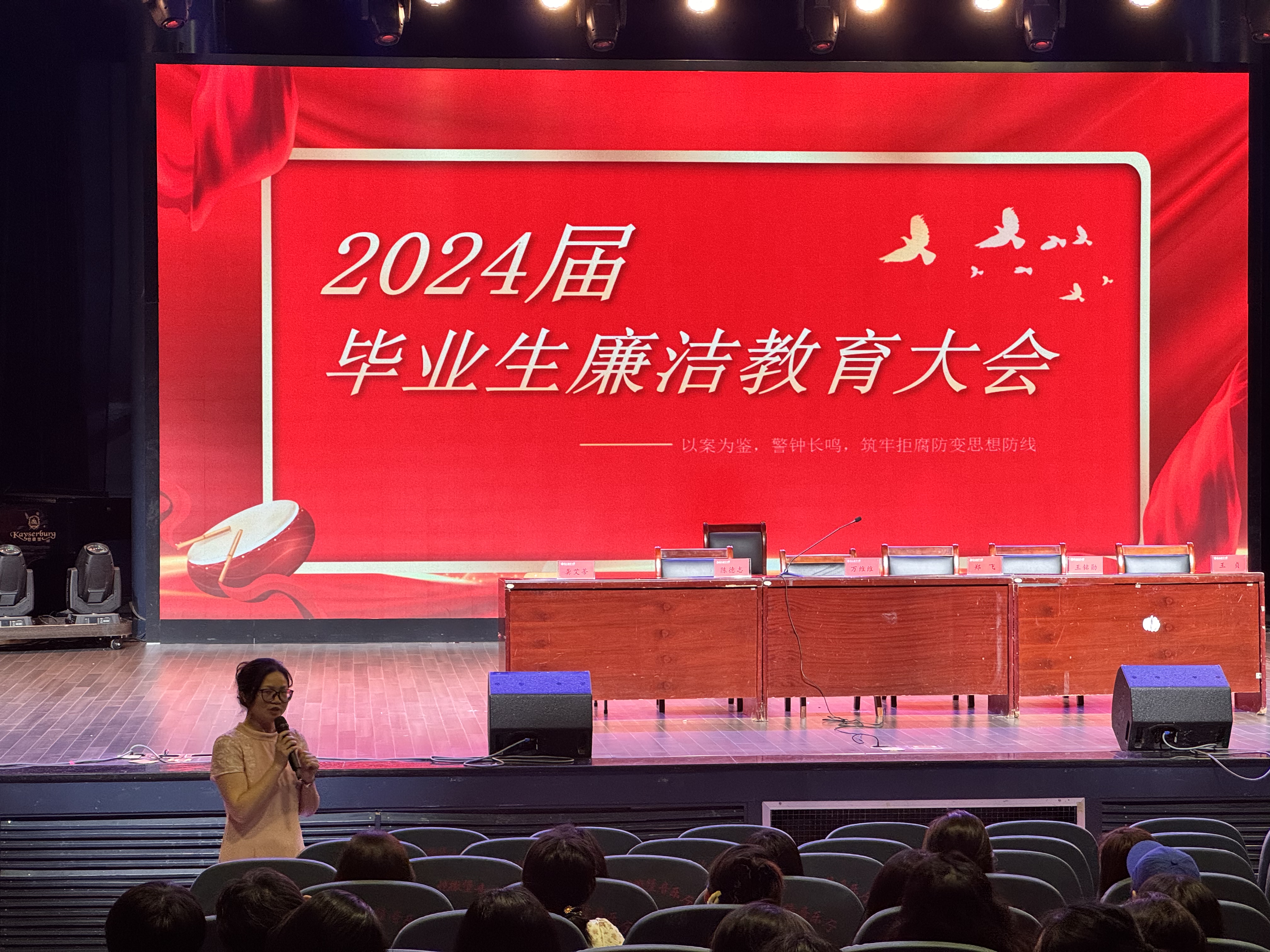 为增强毕业生的廉洁意识和法治观念,筑牢毕业生廉洁从业思想道德防线,帮助毕业生扣好职场和人生“第一粒扣子”,5月23日上午,色片 在音乐厅召开2024届毕业生廉洁教育大会,会议由色片 党委副书记兼副院长郑飞主持。