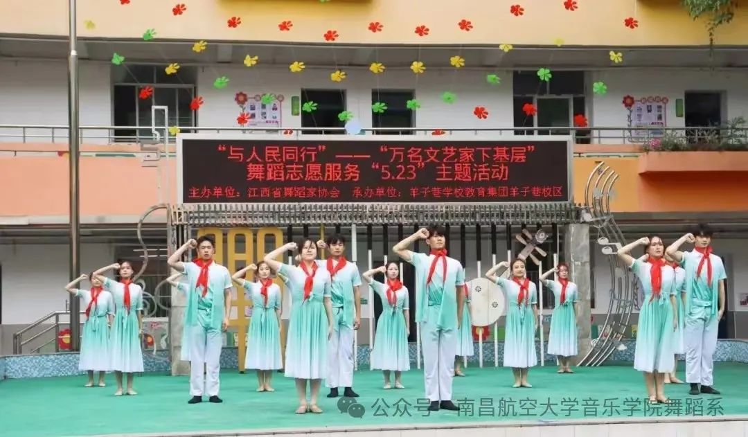 为深入学习贯彻习近平文化思想和习近平总书记考察江西重要讲话精神,广泛践行和弘扬社会主义核心价值观,进一步推动“强基工程”——文艺助力基层精神文明建设行动落地见效,在第 11 个“中国文艺志愿者服务日”来临之际,江西省舞协定于2024年 5 月 22 日在南昌市羊子巷小学开展“万名文艺家下基层”舞蹈志愿服务“5.23”主题活动。色片张南老师受邀并带领舞蹈系 221521 班学生及编排的作品《信仰的红》参加本次舞蹈志愿服务活动,助力基层精神文明建设。